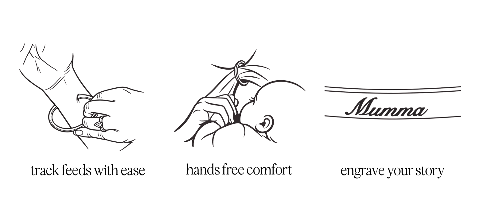 A luminous 14k gold breastfeeding bracelet designed for every season of motherhood. Originally created to track feeds and hold your top during nursing, this personalised bracelet becomes a keepsake long after the newborn stage ends. Whether you are breastfeeding, bottle feeding, navigating toddler life or simply wanting a daily reminder of your strength, it moves with you. Warm, radiant and quietly powerful, gold catches the light beautifully and is waterproof for everyday wear. Add custom engraving to create a meaningful gift for a new mama or a piece that tells your own story.